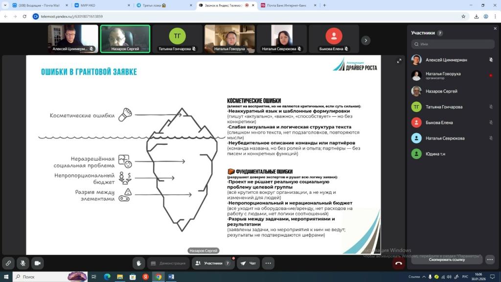 Подробно разобрали заявку ИМОО ТОС "Федчевский", даны конкретные рекомендации по доработке и повышению качества заявки.